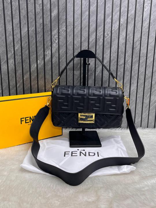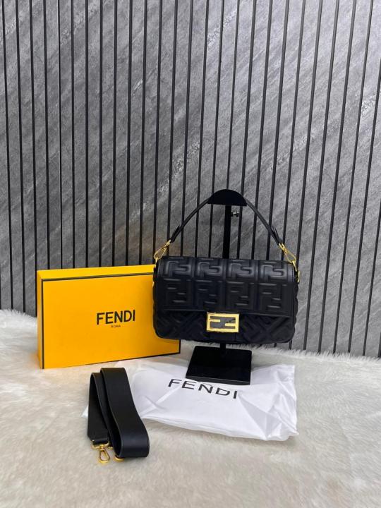 Home Hand bags Fendi_CB_Baguette_AllBlack_Crossbody_ShoulderBag_WithBox_DustCover