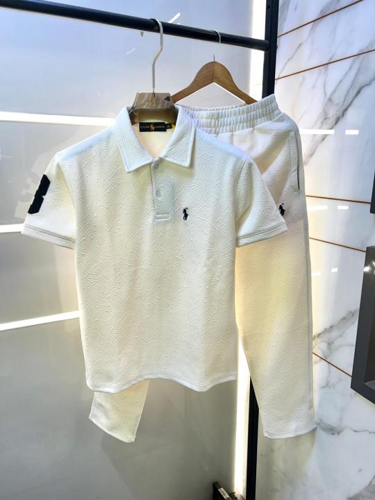 Home Premium Track Suits Ralp h Lauren White Imported Embossed Print Premium Track Suit Brand Carry Bag Packing F3531-WH